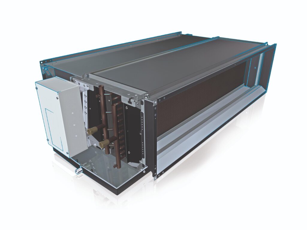 Compact fan coil unit with high cooling capacity for comfort air treatment.