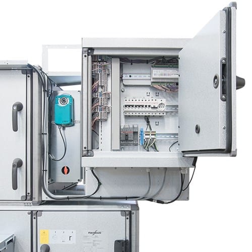 Advanced built-in controls delivers comfortable indoor climate with the highest energy efficiency. Experience-based operating modes designed for optimum performance in a wide range of applications, and including automatic pressure control for units with thermal wheels to ensure that there is no leakage of exhaust air into the supply airstream.